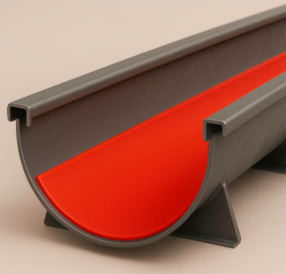 Se utilizan en forma indistinta para recubrimiento interior de caños redondos “A” con o cuadrados. De acuerdo a la necesidad, se protege entre un 30 y 50 % de la superficie con el espesor requerido. Es un producto muy fácil de colocar, dado que es ensamblado en forma telescópica y fijado al caño metálico con tornillos auto perforantes, cubriendo así el largo total del caño. De esta forma, solucionamos con eficacia la protección anti abrasiva evitando el desgaste excesivo en cañerías y otras piezas. Se utilizan en Plantas de Acopio de cereales e instalaciones portuarias, en todos los sectores expuestos al alto impacto y/o abrasión como ser: Tolvas, Codos, Amortiguadores,